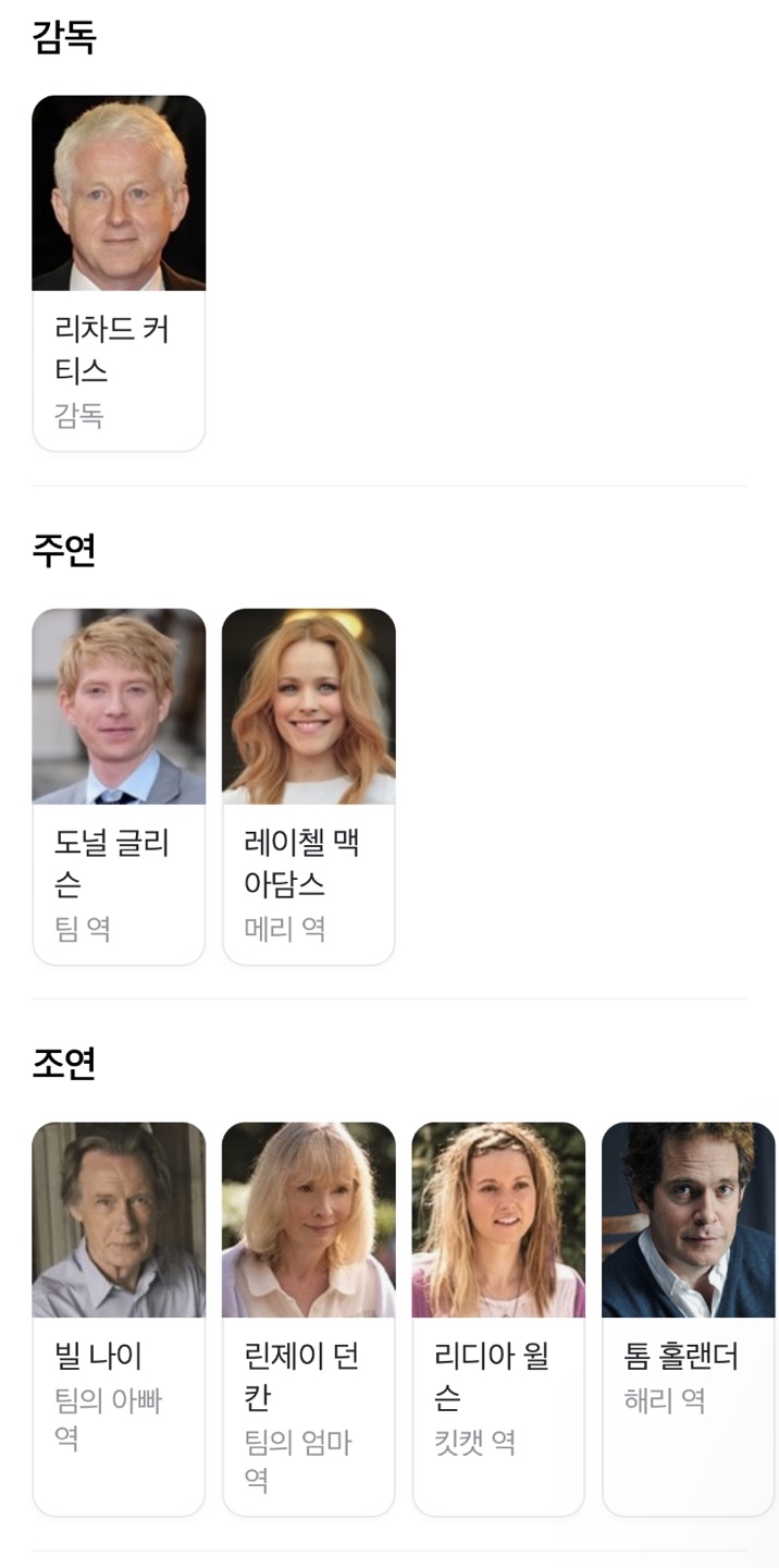 - 빌 나이 (Bill Nighy) – 해리 레이놀즈 (팀의 아버지)